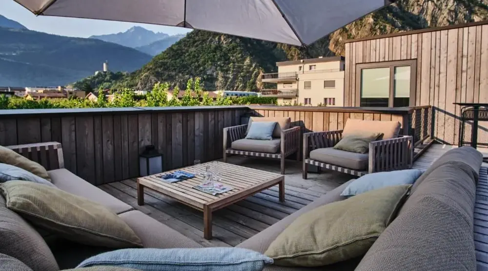 Architectuur zocht origineel naast een boomgaard en uitzicht op het prachtige Valais -gebergte richting Verbier. Comfort, Zwitsers, zeer goed beddengoed, moderne doucheruimte grote ruimtes